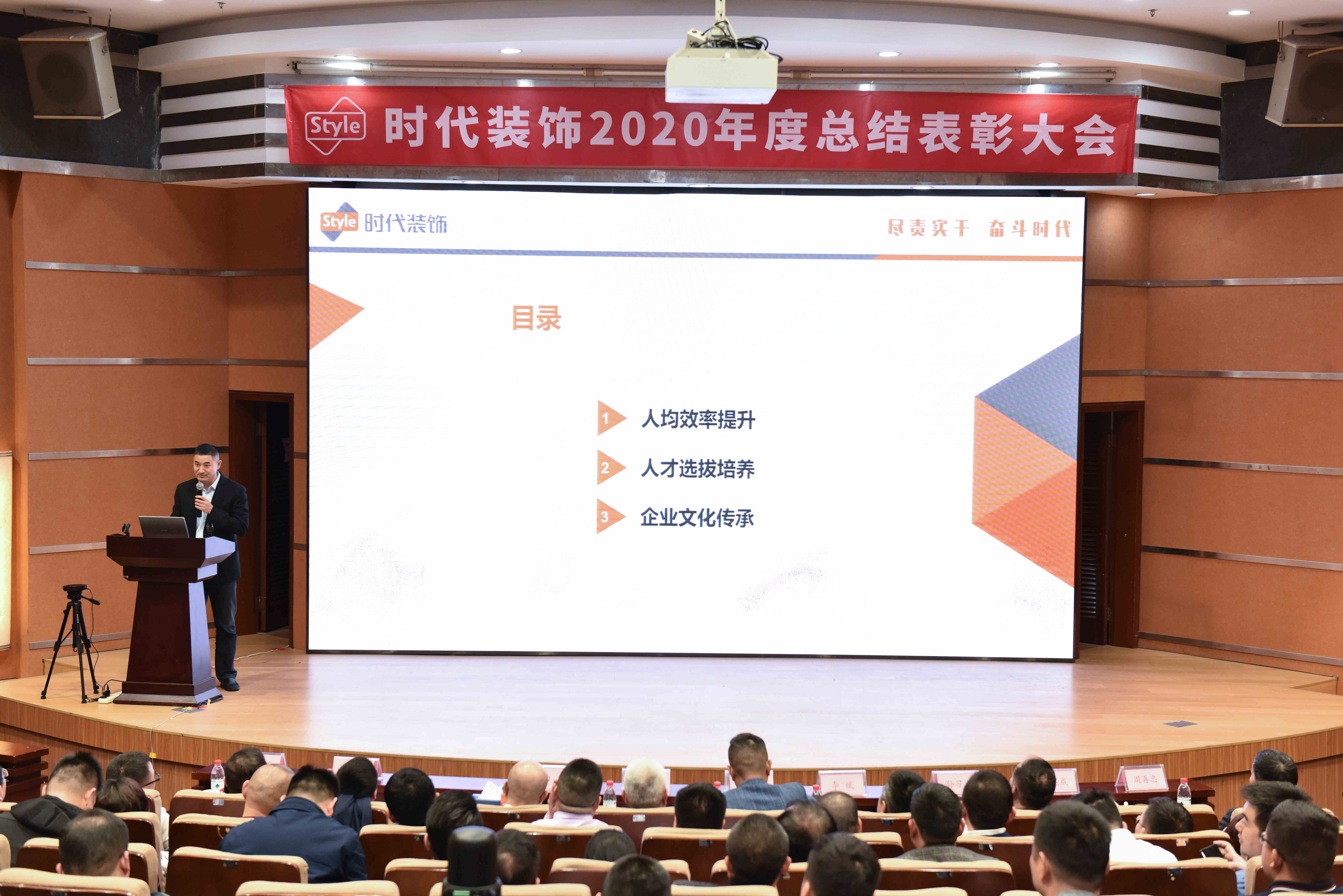 大會(huì)最后一項(xiàng)議程,由公司董事長(zhǎng)曲毅先生向全員講解時(shí)代裝飾的企業(yè)文化。