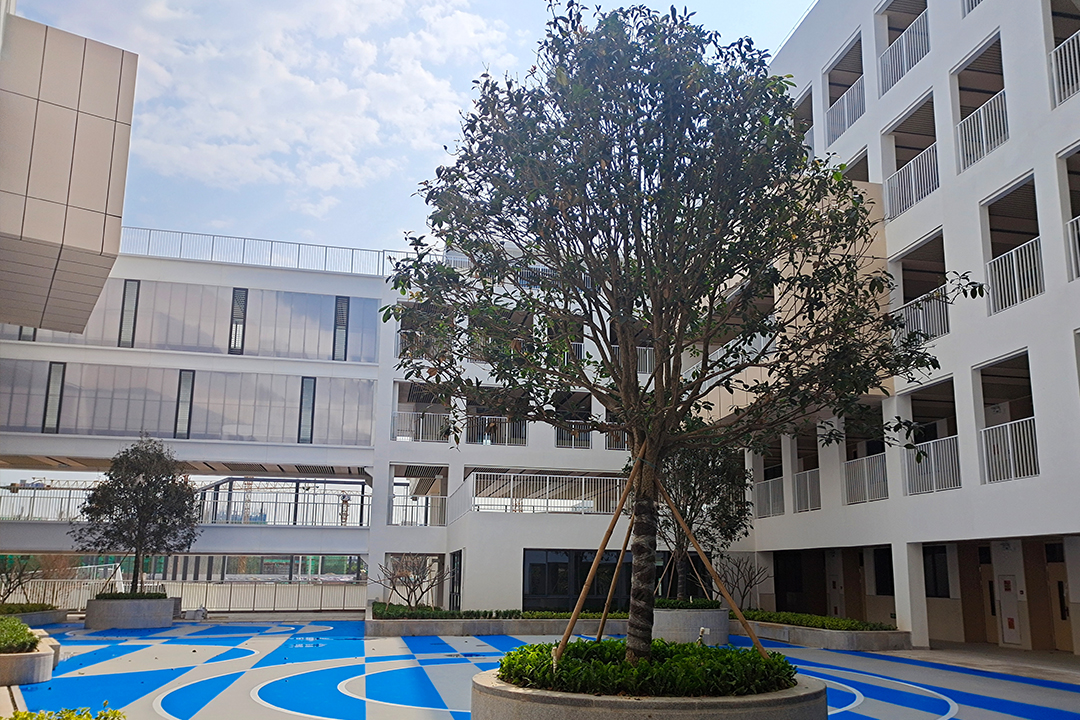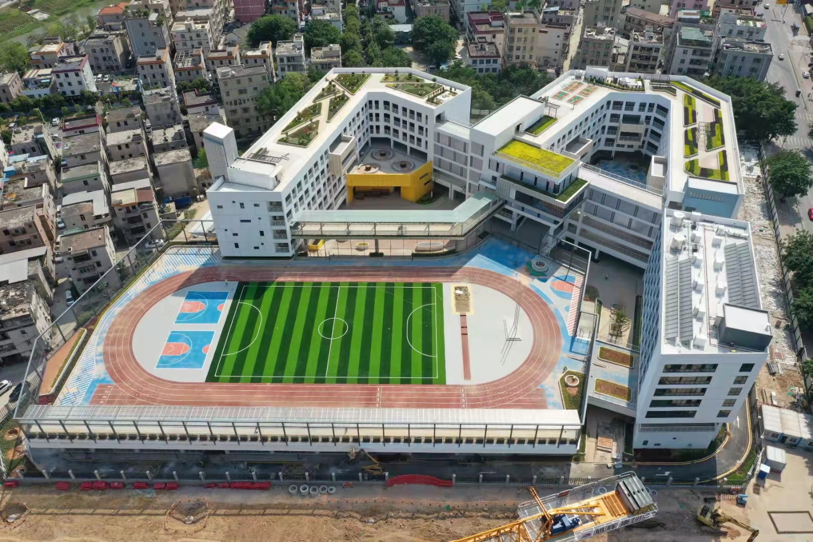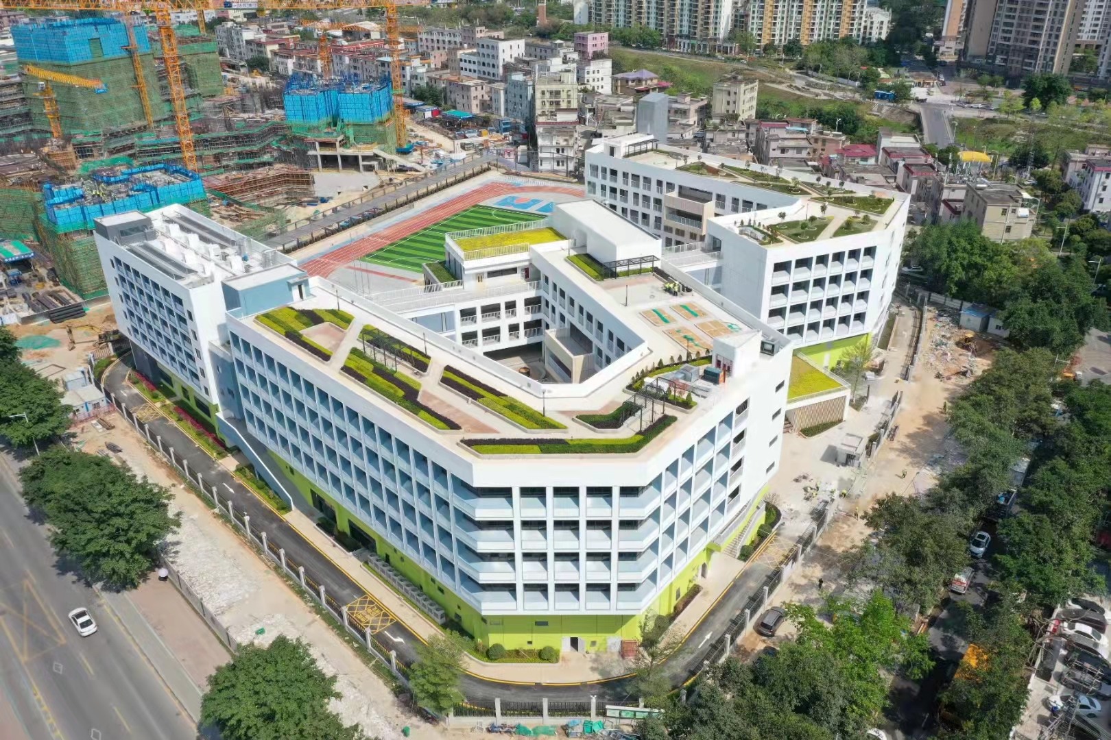 日新小學(xué)(原世界廠城市更新配套小學(xué)項(xiàng)目)已于今年9月正式開(kāi)學(xué),該學(xué)校位于深圳市坪山區(qū)坪山街道金碧路與規(guī)劃洋嶺路交匯處東南角,總用地面積為17000平方米,總建筑面積為48228㎡平方米,辦學(xué)規(guī)模為42班小學(xué),可提供1890個(gè)學(xué)位。學(xué)校設(shè)計(jì)理念為活力街區(qū)+秩序庭園,引入豐富有趣的底層娛樂(lè)空間以及上層高效、秩序的教學(xué)空間,讓孩子能夠自由快樂(lè)地學(xué)習(xí)和成長(zhǎng)。