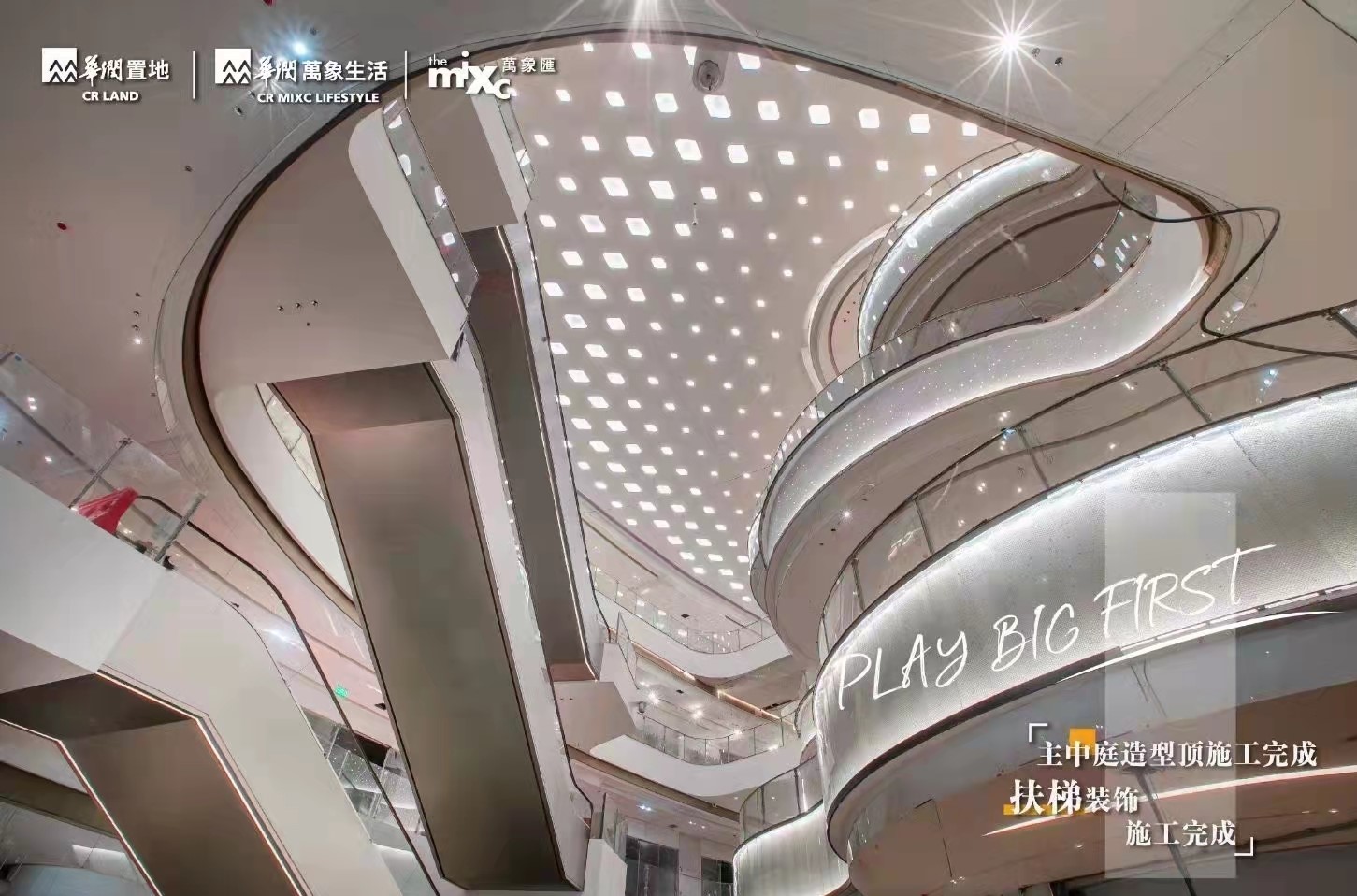 時(shí)代裝飾承建I區(qū)裙樓商業(yè)精裝修、商業(yè)幕墻及G、H區(qū)公共空間精裝修,在外立面幕墻施工中,我司采用三維可調(diào)石材背栓干掛工藝及穿孔鋁板幕墻三維防水工藝,在保證幕墻平整牢固和整體防水性能的同時(shí),也實(shí)現(xiàn)了各類造型幕墻的裝配化施工,打造出濃厚的個(gè)性化商業(yè)氣息。在萬(wàn)象匯室內(nèi)空間中,以“瀑光之城”和“沐光之廳”兩個(gè)重點(diǎn)空間規(guī)劃布局,通過(guò)交錯(cuò)退臺(tái)的空間關(guān)系與綠植天窗的光影結(jié)合,創(chuàng)造室內(nèi)外空間轉(zhuǎn)換,使人們?cè)谙硎墁F(xiàn)代化商業(yè)的同時(shí)還能與自然環(huán)境零距離接觸。