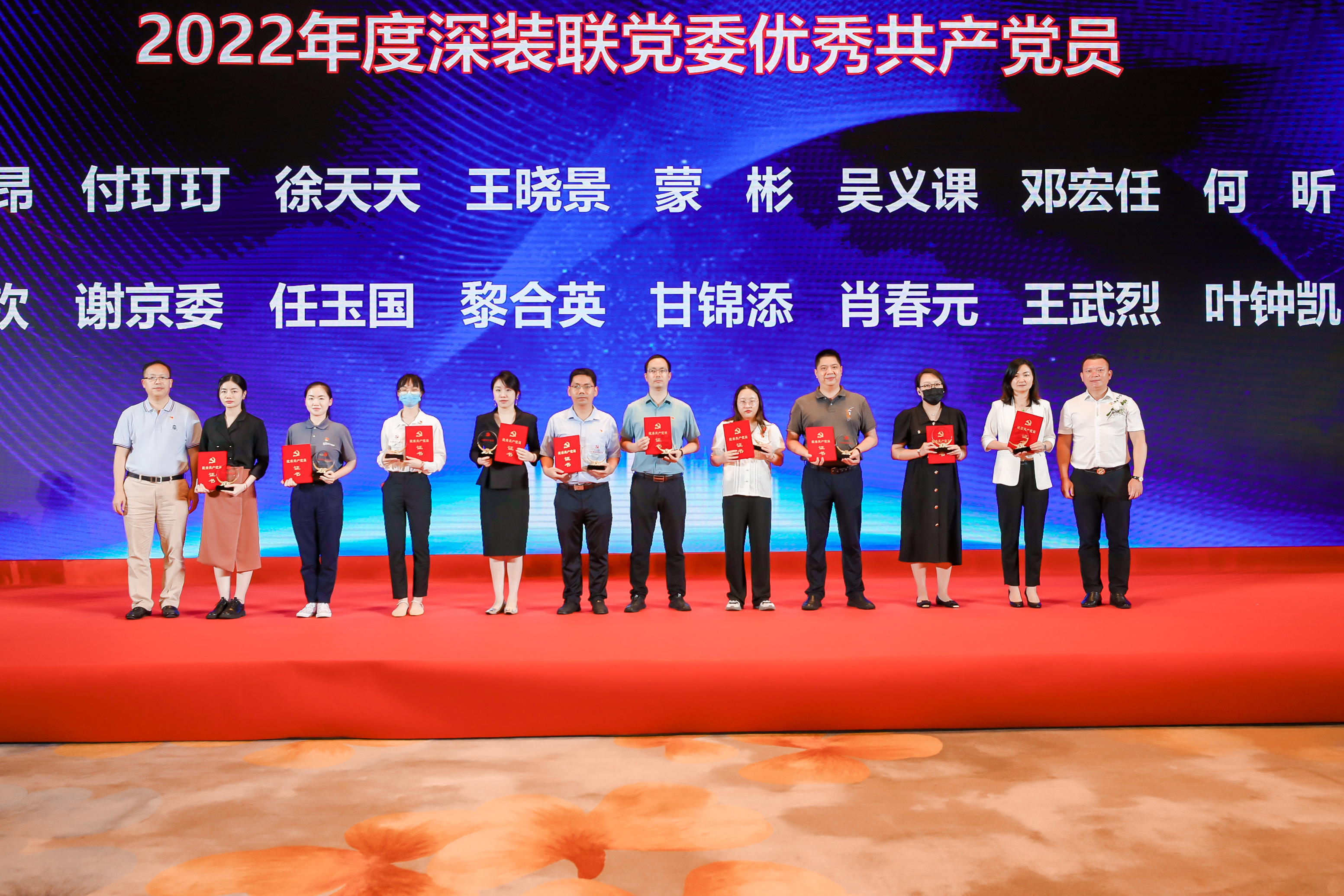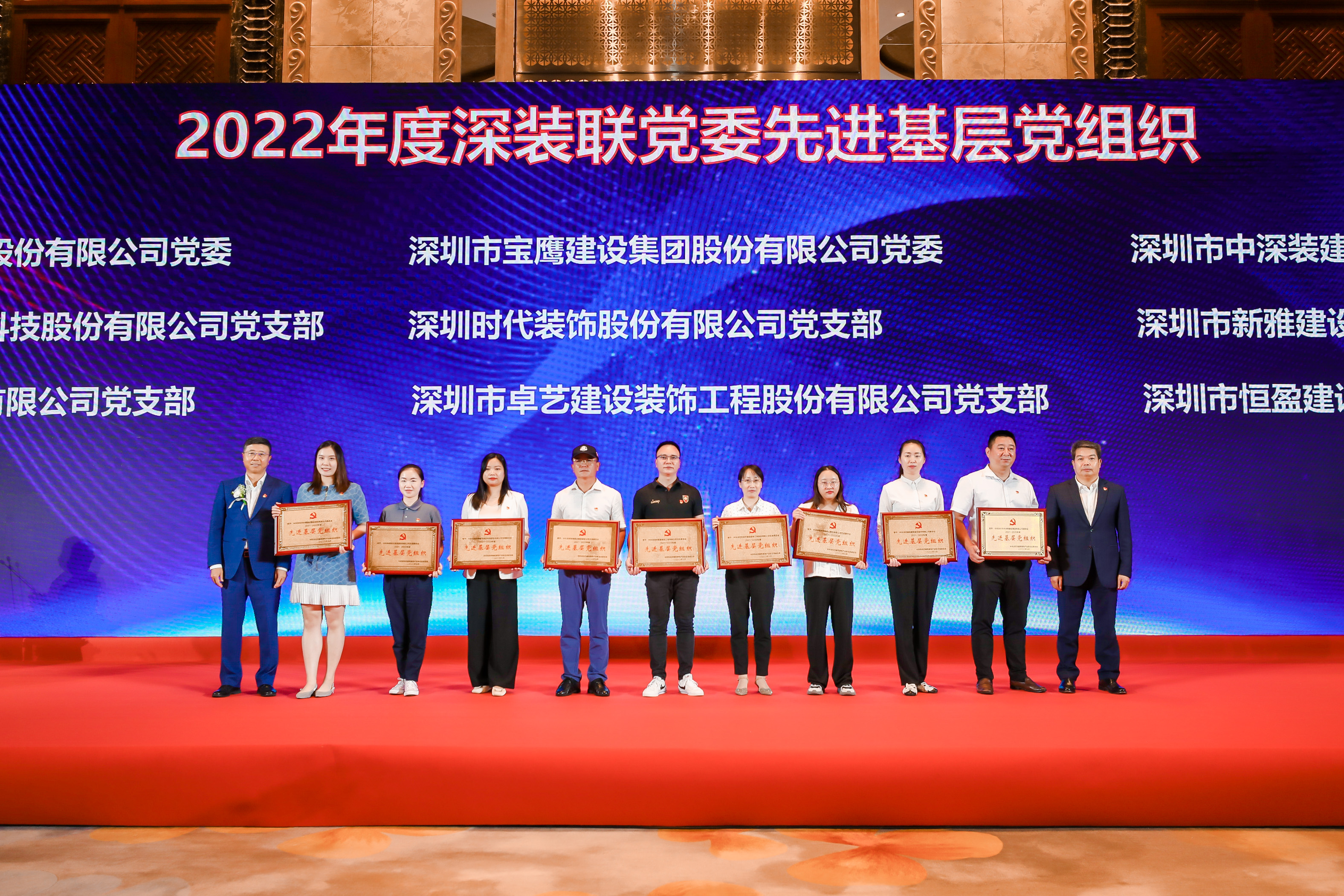 中共深圳時(shí)代裝飾股份有限公司支部委員會(huì)獲得2021-2022年度先進(jìn)基層黨組織(公司代表付玎玎領(lǐng)獎(jiǎng):左三)