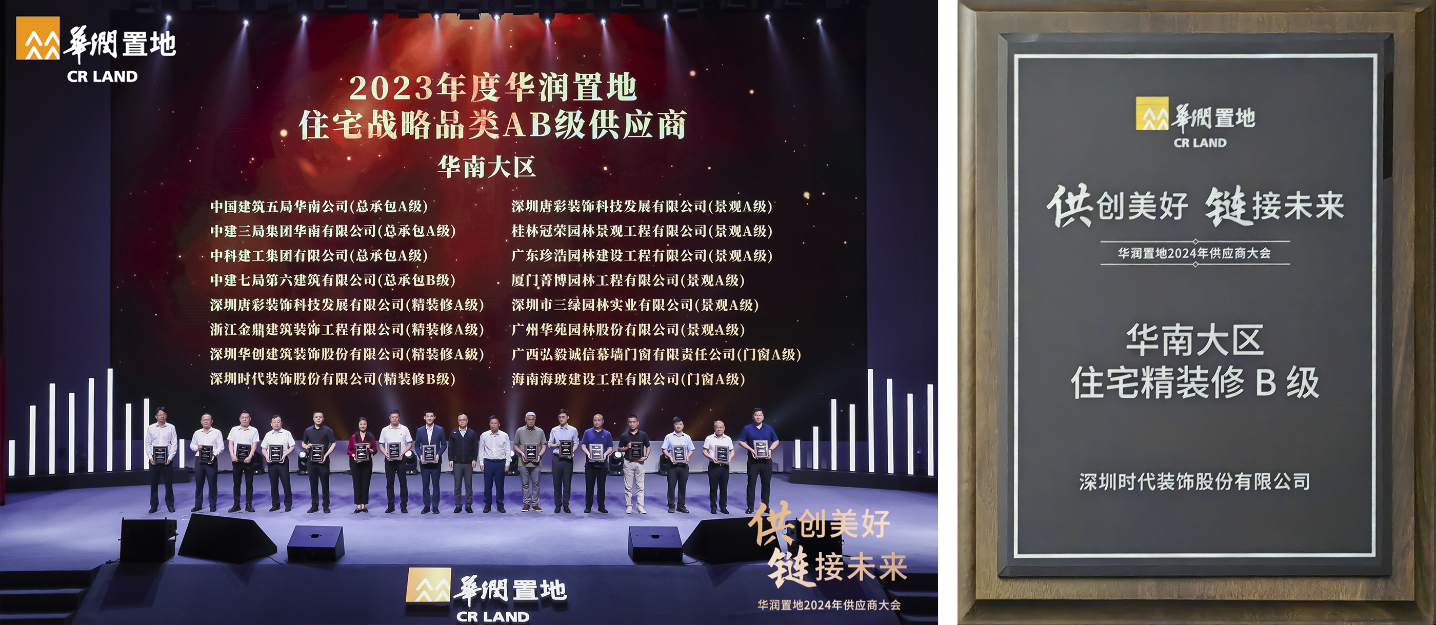 摘要:5月30日,時(shí)代裝飾出席華潤(rùn)置地2024年供應(yīng)商大會(huì)并獲多項(xiàng)榮譽(yù)。