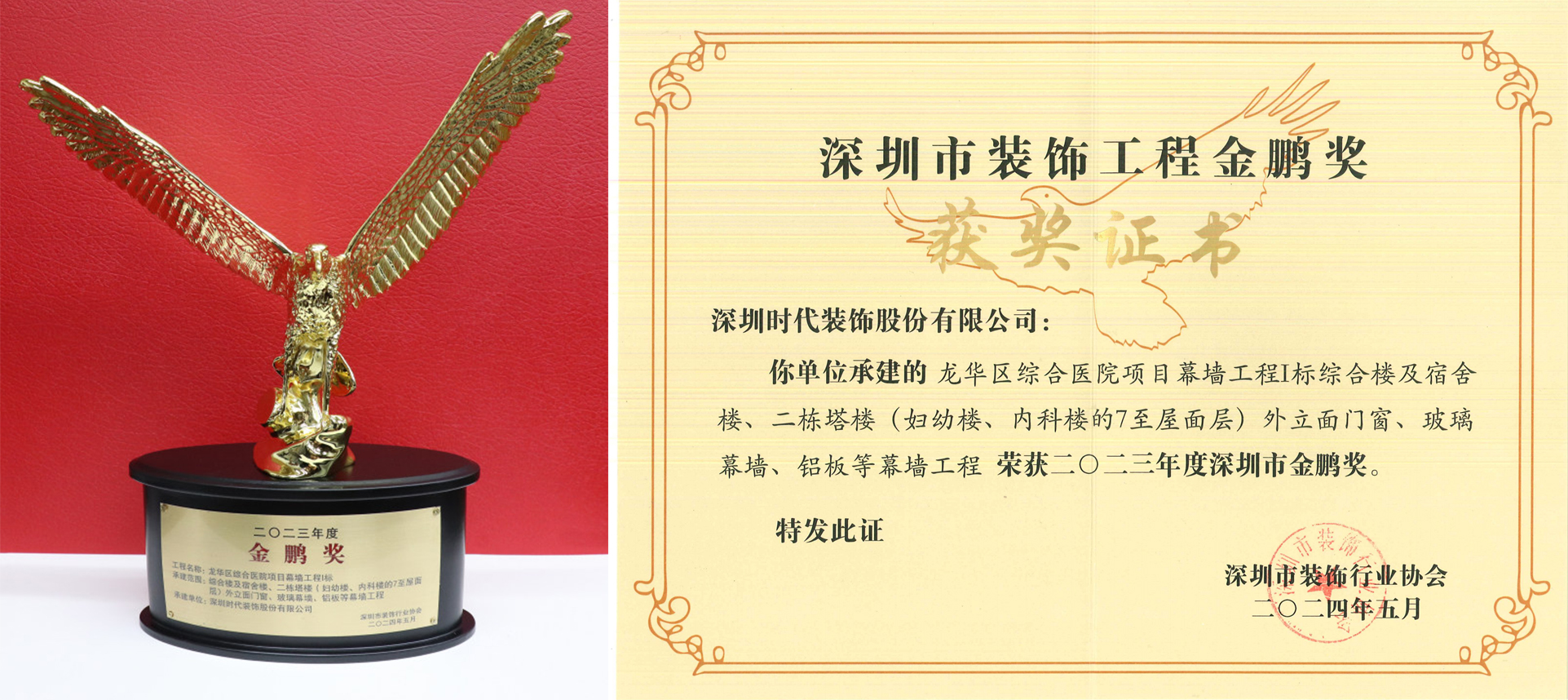 由時代裝飾承建的華潤城項目潤璽二期花園A標段精裝修分包工程及龍華區(qū)綜合醫(yī)院項目幕墻工程I標,憑借卓越的品質(zhì)脫穎而出,榮獲“2023年度深圳市裝飾工程金鵬獎”。
