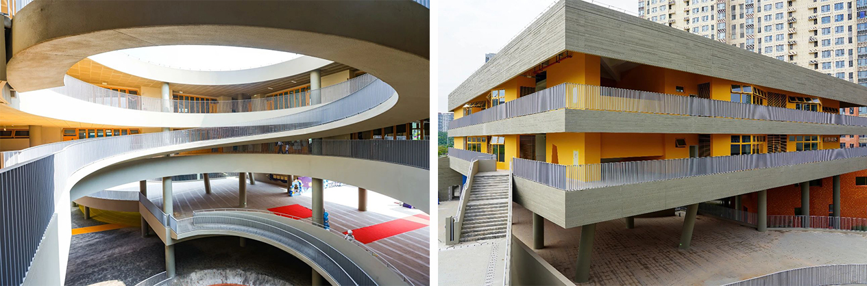 項(xiàng)目應(yīng)用了1.3萬㎡的木紋清水混凝土,這一材料不僅豐富了校園的視覺美感,更以其環(huán)保特性,為學(xué)生營造了一個(gè)健康、安全的學(xué)習(xí)環(huán)境。