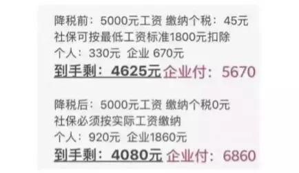 需要強調的是,對于一直按照實際工資繳納社保的人來說,在稅前工資沒變的情況下,降稅后,到手工資其實是增加的。